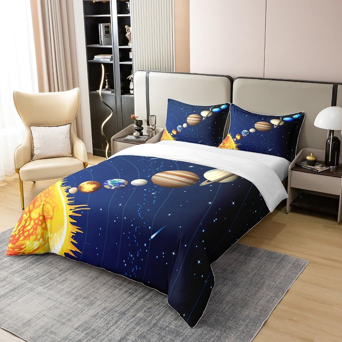 Cotton Duvet Cover Set Pattern Bedding Set, simply decorating your rooms any time you want, bringing you fresh feel for year round use Size Information Twin size:2pcs duvet cover set,1 Duvet Cover 68 x 90 inch,173 x 228cm, 1 pillowcase 20 x 30 inch,51x75cm.Without Comforter Full size:3pcs duvet cover set, 1 Duvet Cover 79 x 90 inch,200 x 229cm, 2 pillowcase 20 x 30 inch,51 x 75cm.Without Comforter Queen size:3pcs duvet cover set, 1 Duvet Cover 90 x 90 inch,229 x 229cm, 2 pillowcase 20 x 30 inch,51 x 75cm.Without Comforter King size :3pcs duvet cover set, 1 Duvet Cover 104 x 90 inch,264 x 229cm, 2 pillowcase 20 x 36 inch,51 x 92cm.Without Comforter Personalize your bedroom Beautiful design and colorful print, makes your bedroom unique and brings you a wonderful dream Washing instructions Machine wash separately in cold water,hang dry, do not bleach Occasion The cotton soft duvet cover bedding sets designed for Children ,Adult, Men, Women, Teens. This duvet cover set is also suitable for full seasons, Spring, Summer, Autumn and Winter