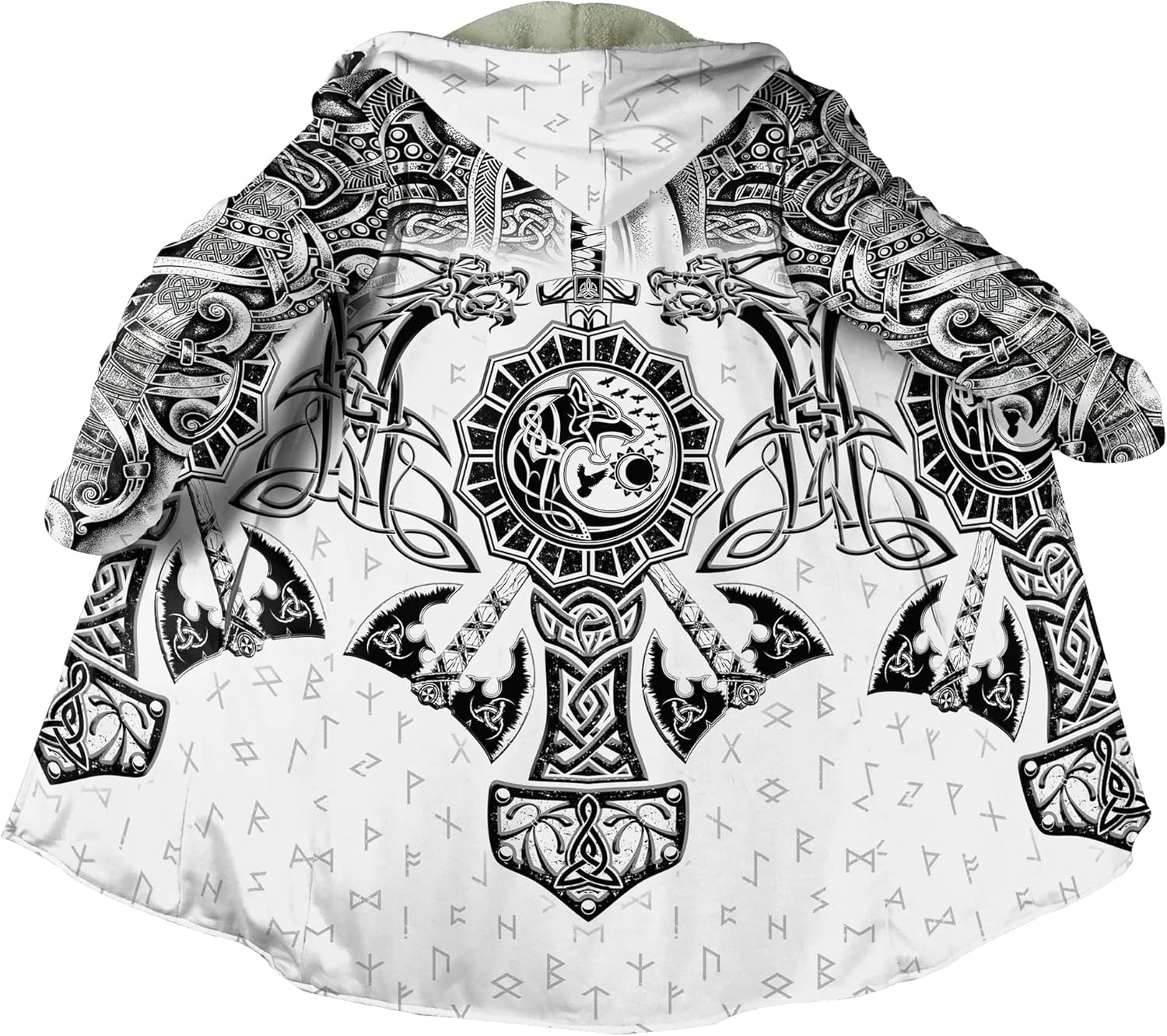 Introducing our Viking-inspired winter cloak featuring Nordic mythology patterns, designed for both men and women. This cloak boasts 3D digital printing that won’t fade, crack, or peel. Crafted from crystal velvet with an ultra-soft faux wool lining, it ensures warmth and comfort. Key features include large pockets and a stylish horn buckle design. Perfect for role-playing events, themed parties, and costume balls, this Viking cloak makes an ultimate winter gift for anyone who loves Norse legends.Packing list: 1 * Viking winter CoatsWashing Instructions: Wash in cold water, hand/machine wash without bleach.US Size: S/M/L/XL/XXL/3XL/4XL/5XL Please refer to the size chart we provide carefully before purchasing to avoid inconvenience to you.Our store provides a large number of Viking costumes, If you love Scandinavian history and mythology, Please browse this store